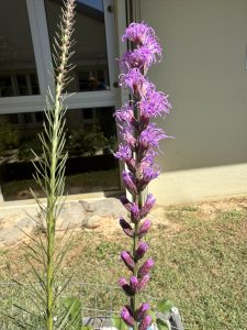 Walking through a northwest Florida wildflower prairie in autumn, the star of the show is Liatris. Known as dense gayfeather or blazing star, this tall (up to 7’!) stunner of a plant is covered up with clusters of small purple flowers. The flowers are are composed of tiny, frilly five-petaled florets. Each cluster may have groups of up to 18 flowers at a time, crowding the stalk with color.