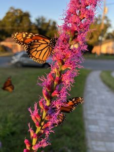 Migrating monarchs feed on blazing star in late fall. Photo credit: Whitney Scheffel