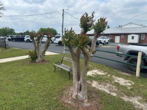 Previously beautiful ‘Muskogee’ Crape Myrtle murdered in spring 2025. Photo courtesy Daniel Leonard.