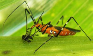 Adult assassin bug feeding on a cornsilk fly. Photo credit: Megha Kalsi, UF