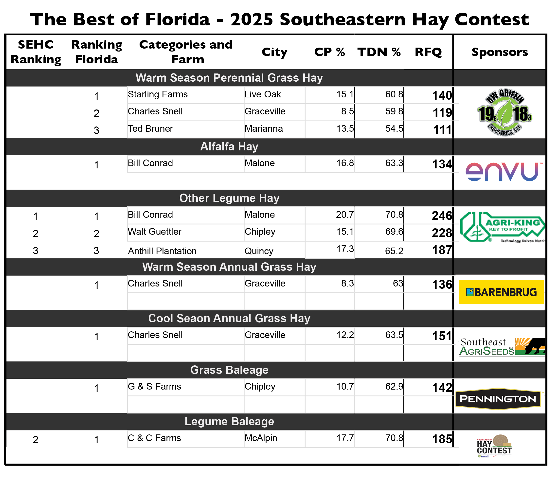 - 2nd Place: C&C Farms, McAlpin, FL