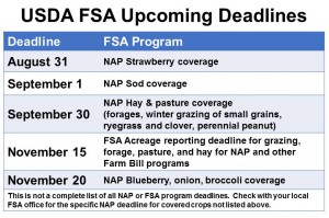 FSA NAP Upcoming Deadlines by Doug Mayo | Aug 20, 2015 Author Recent Posts Follow MeDoug MayoJackson County Extension Director, Livestock & Forage Agent, Lead Editor for Panhandle Ag e-Newsdemayo@ufl.edu - 850-482-9620Follow me on Twitter@UFCowman Follow MeLatest posts by Doug Mayo (see all) Ranch Record Keeping for Annual Analysis & Innovation - January 23, 2026 Friday Feature: 2026 Farm Dog of the Year - January 23, 2026 2025 Weather Summary and 2026 1st Quarter Outlook - January 16, 2026